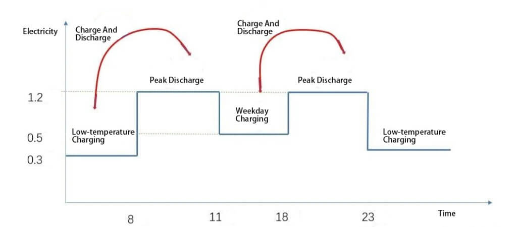 피크타임은 주로 주간근무시간에 발생하며, 피크수요요금은 회사의 전기요금에서 많은 부분을 차지합니다. 상업용 및 산업용 컨테이너 BESS를 통해 기업은 저렴한 전기를 이용해 비첨두 시간에 축전지를 충전하고, 피크 시간에 사용할 수 있어 피크 수요 요금을 효과적으로 절감하고 많은 비용을 절감할 수 있다.